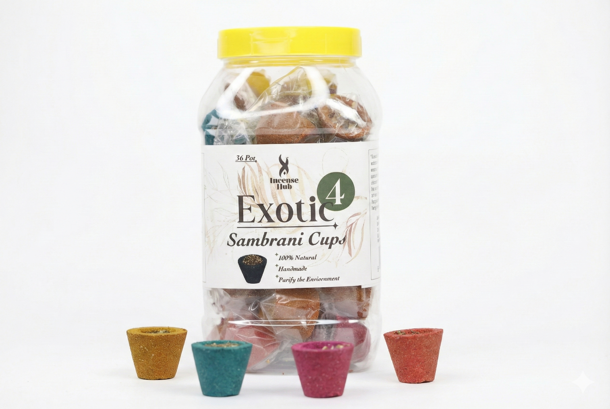 Exotic 4 Sambrani Cups Jar Pack – Traditional Purification & Calming Aroma
